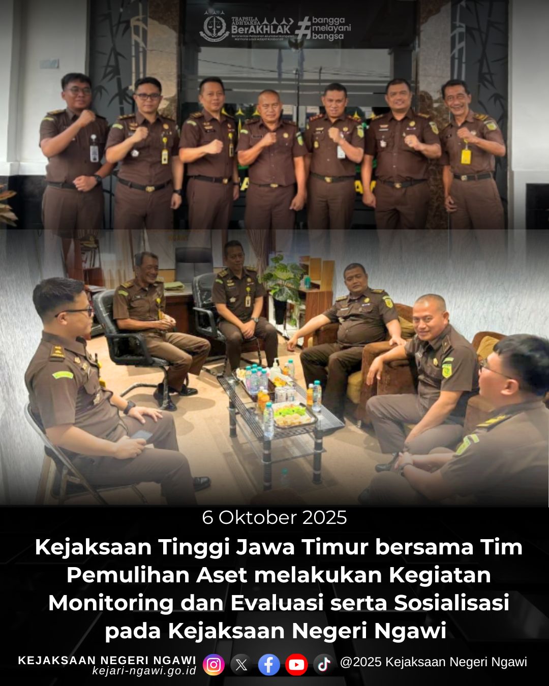 Kejaksaan Tinggi Jawa Timur bersama Tim Pemulihan Aset melakukan Kegiatan Monitoring dan Evaluasi serta Sosialisasi pada Kejaksaan Negeri Ngawi pada Bidang PAPBB terkait penyelesaian aset.