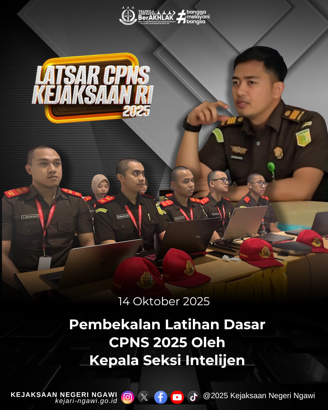 Kejaksaan Negeri Ngawi melaksanakan kegiatan pembekalan bagi peserta Latihan Dasar (Latsar) CPNS Golongan III bertempat di Ruang Pelatihan Kejaksaan Negeri Ngawi.