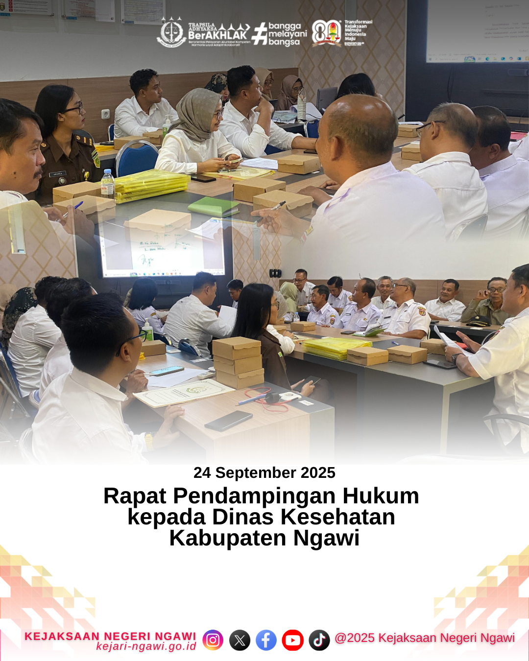 Kepala Seksi Perdata dan Tata Usaha Negara, Bapak Nanang Priyanto, S.H., M.H. beserta Tim Jaksa Pengacara Negara Kejaksaan Negeri Ngawi melakukan rapat Pendampingan Hukum kepada Dinas Kesehatan Kabupaten Ngawi.