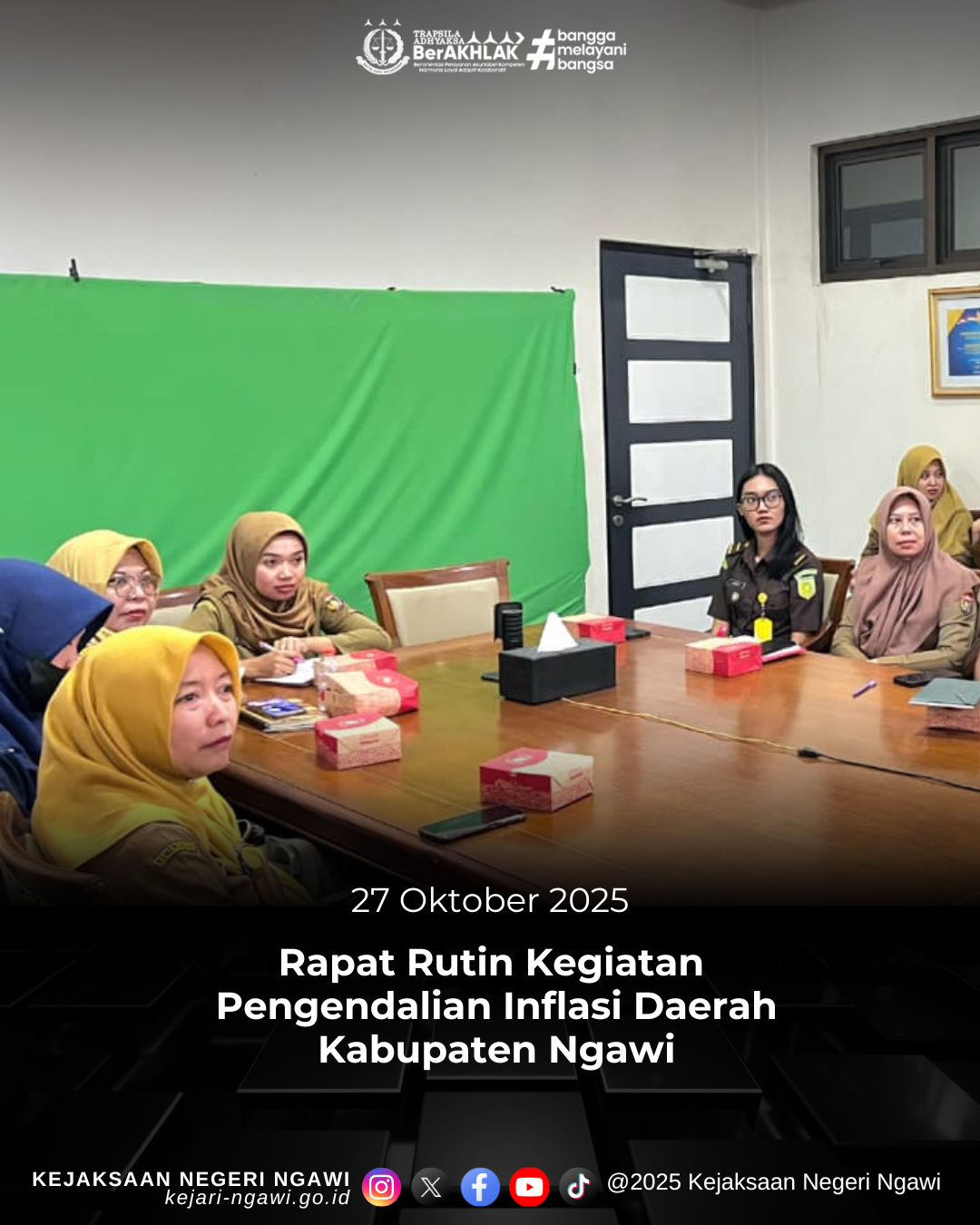 Tim Jaksa Pengacara Negara pada Kejaksaan Negeri Ngawi mengikuti Rapat Rutin kegiatan pengendalian Inflasi Daerah Kabupaten Ngawi.