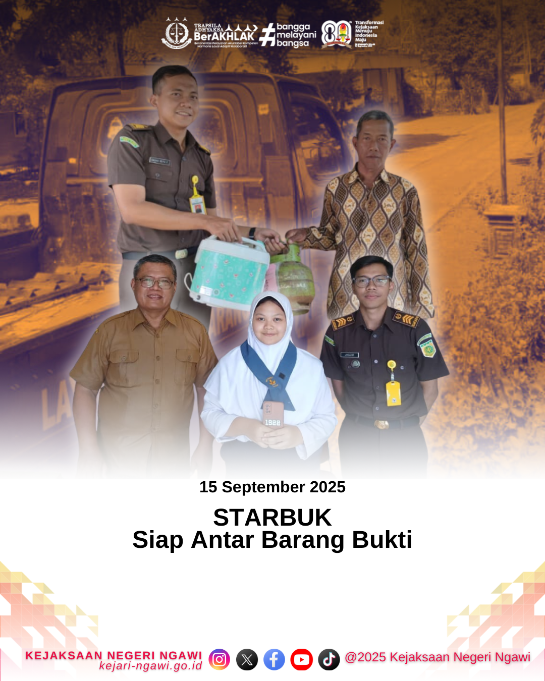TINGKATKAN PELAYANAN PUBLIK, Bidang PAPBB Kejari Ngawi melalui program STARBUK yaitu “Siap Antar Barang Bukti” telah melakukan pengembalian barang bukti Secara Gratis pada Wilayah Kabupaten Ngawi pada hari Senin, 15 September 2025