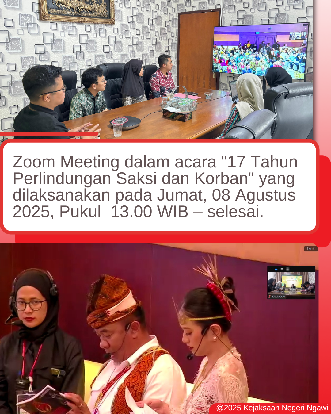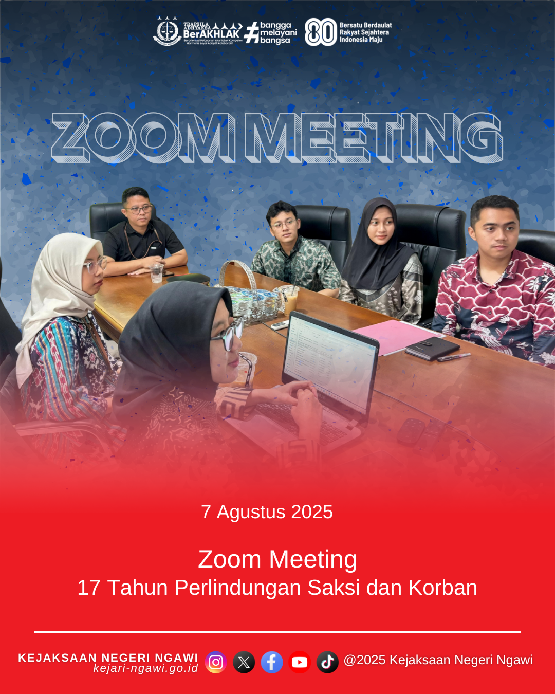 Zoom Meeting dalam acara “17 Tahun Perlindungan Saksi dan Korban” yang dilaksanakan pada Jumat, 08 Agustus 2025, Pukul 13.00 WIB – selesai.